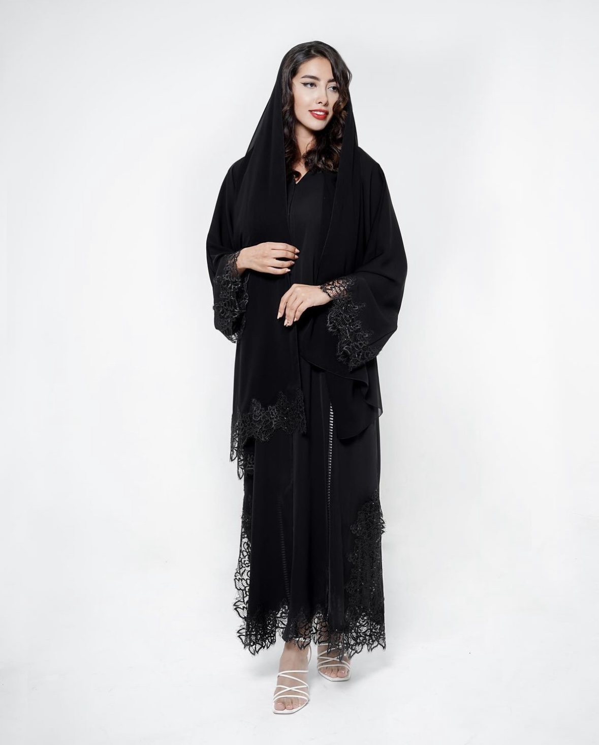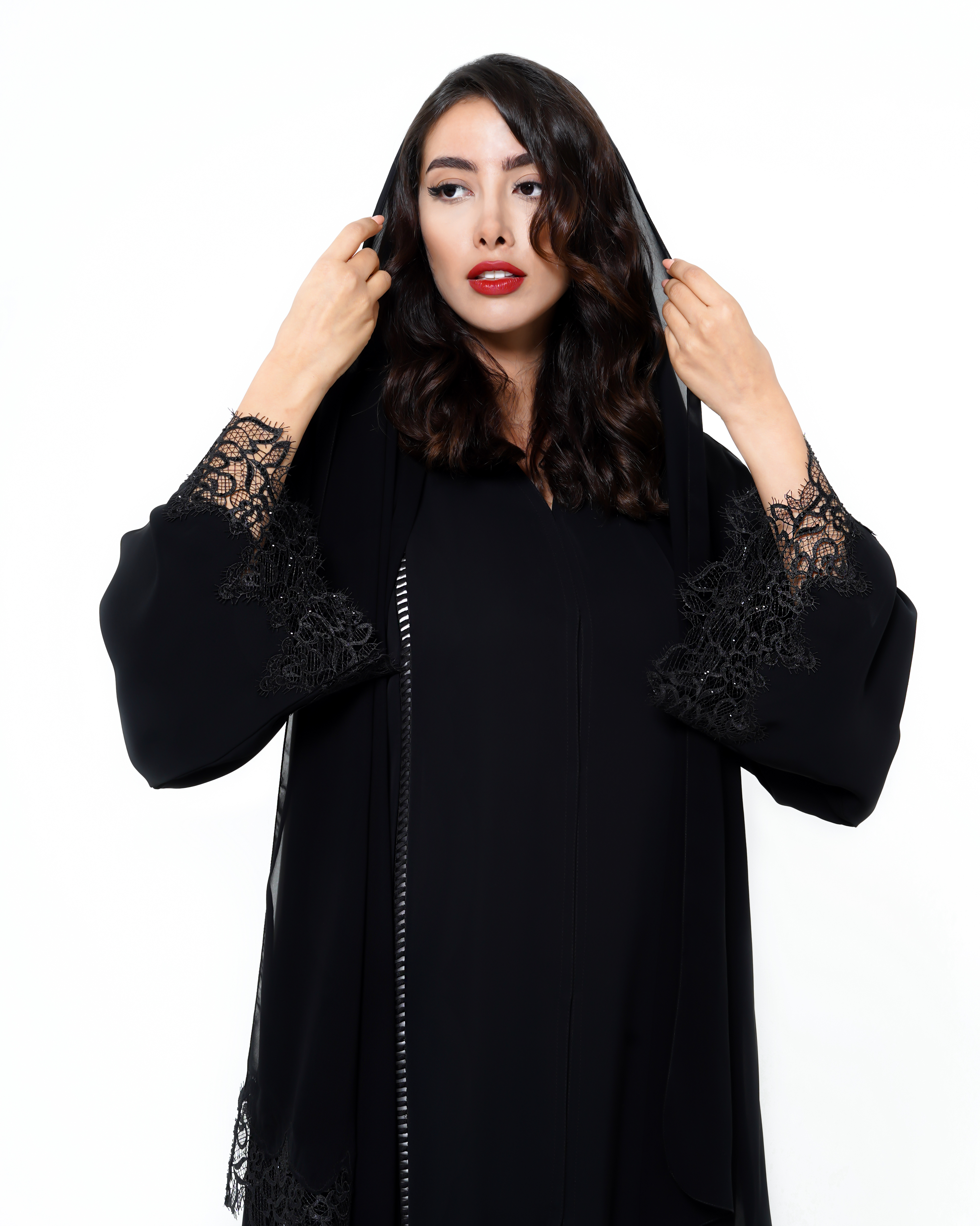 V-4-Black Abaya with lace in hands and corners